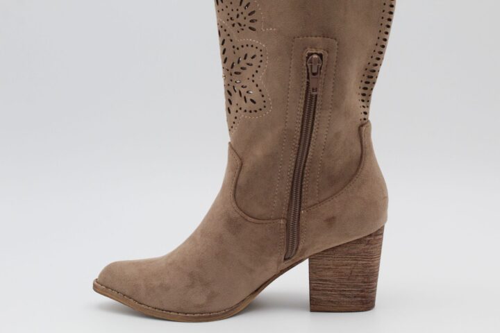 Bota cowboy de media caña para mujer en suave antelina troquelada, ref5603